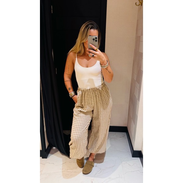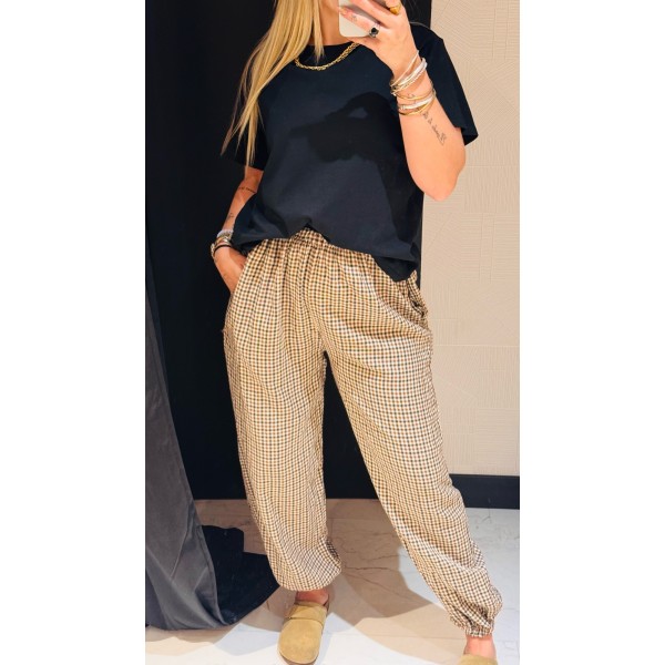 PANTALON BOMBACHO VICHY CAMEL