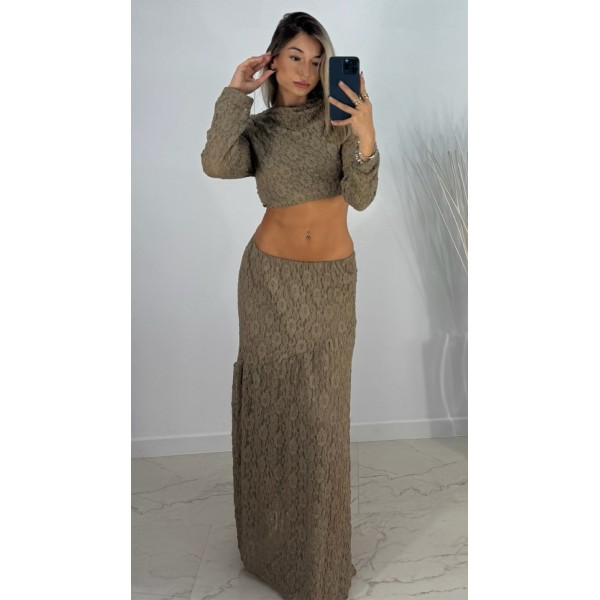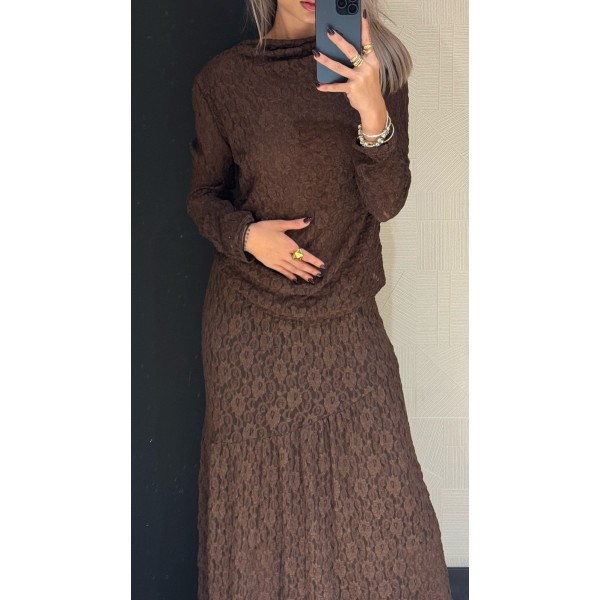 FALDA MAX ENCAJE MARRON