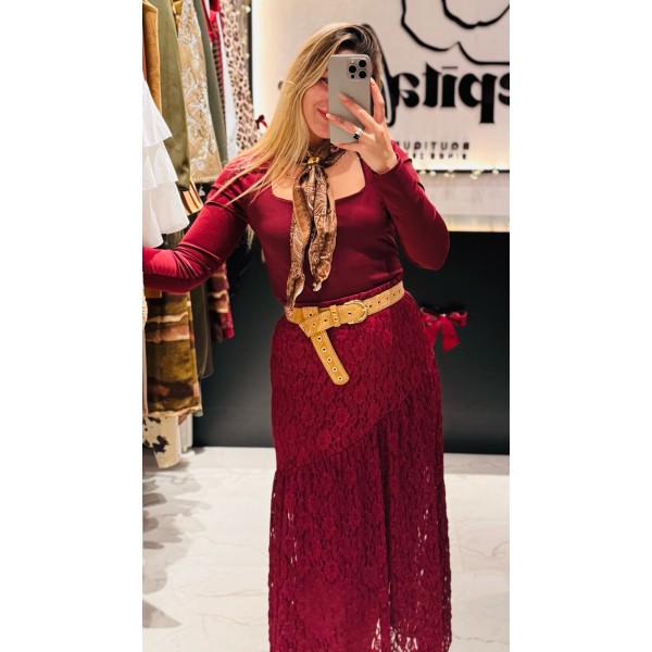 FALDA MAX ENCAJE BURDEO
