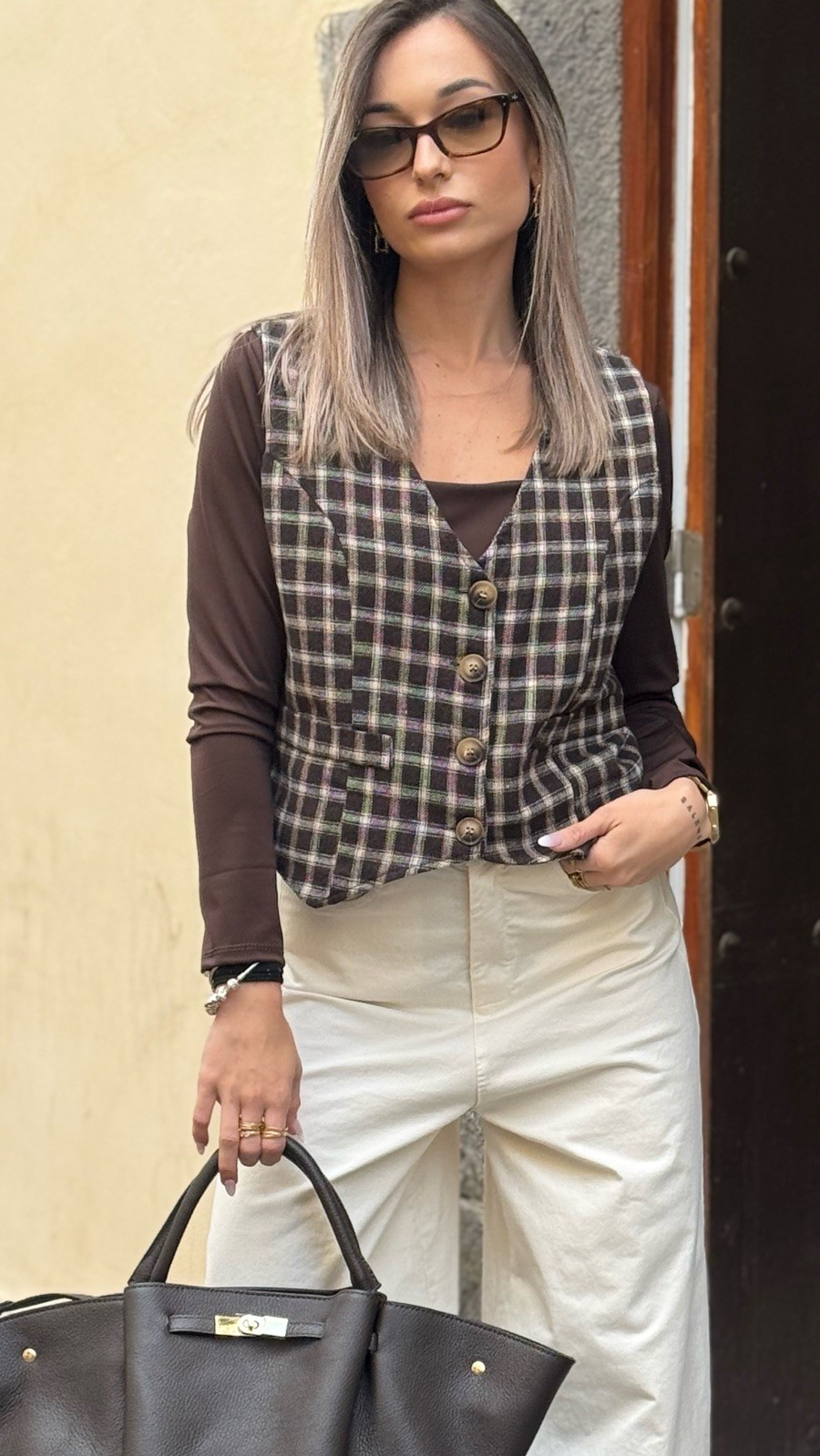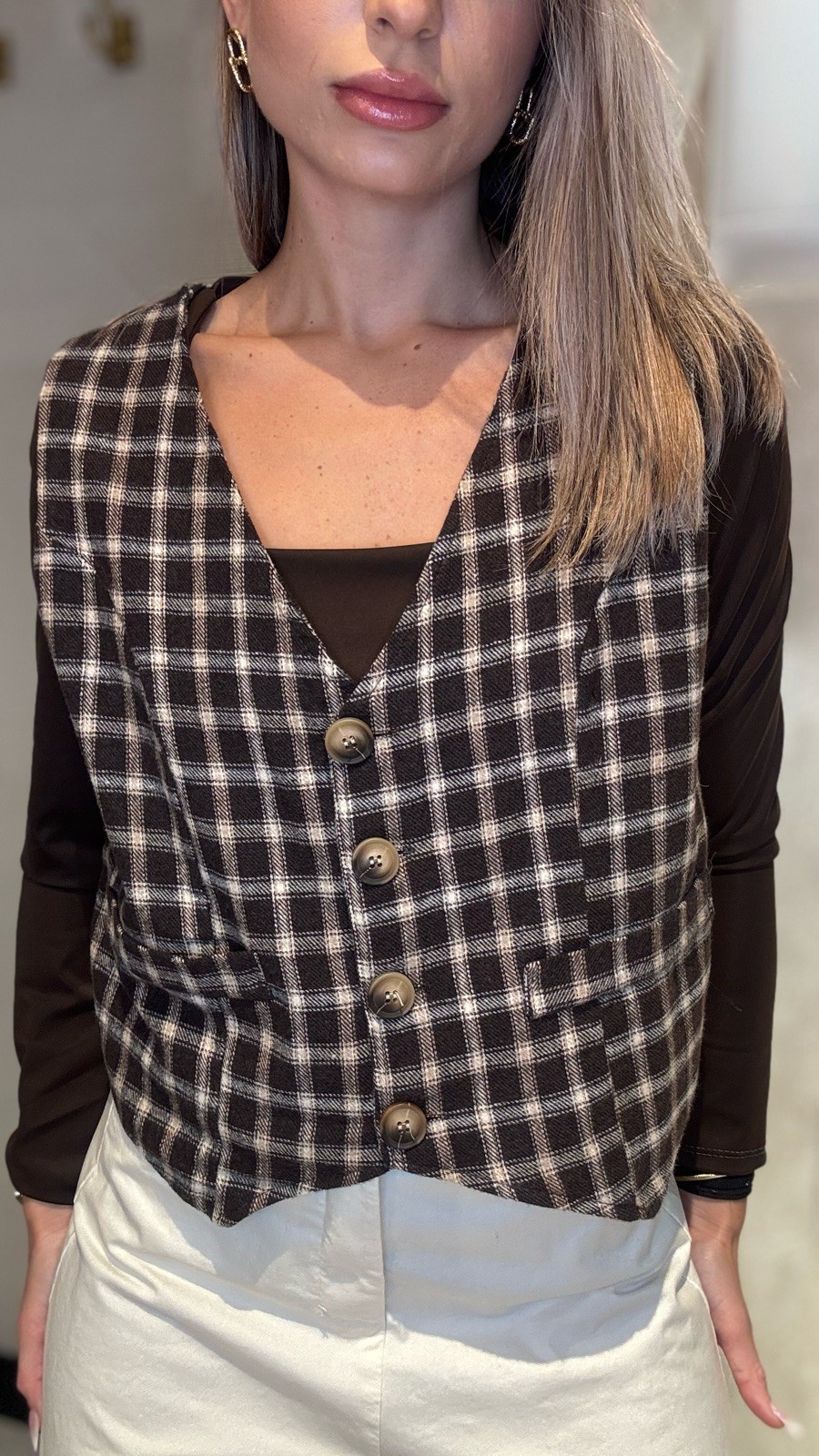 CHALEQUILLO MARRON CUADROS