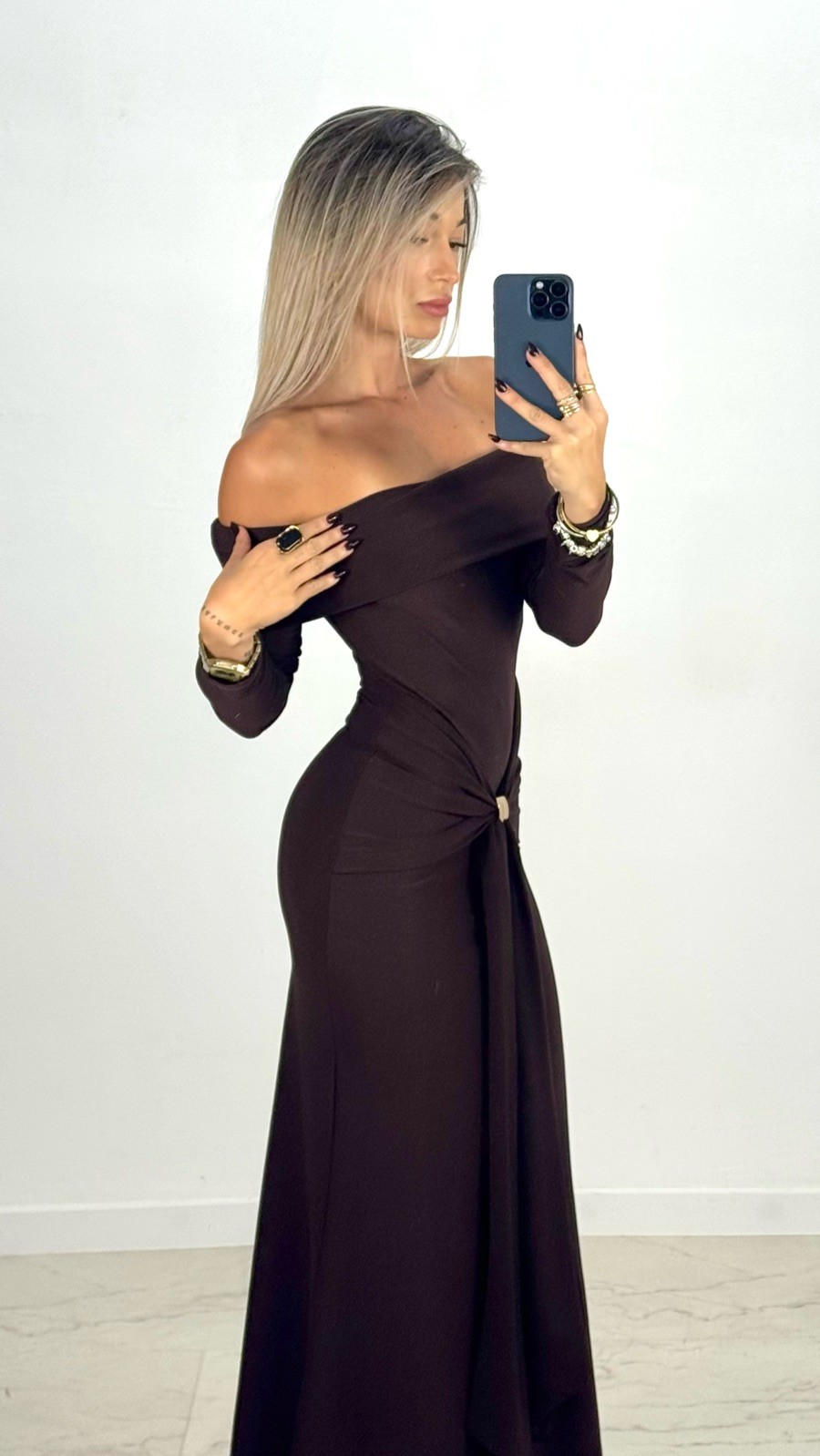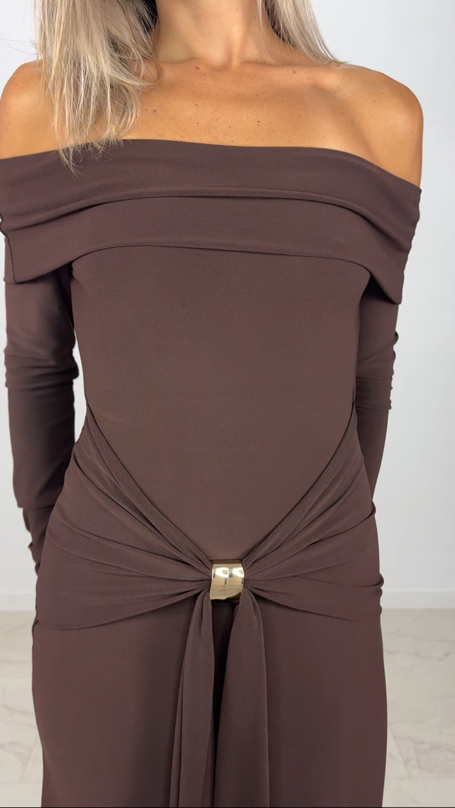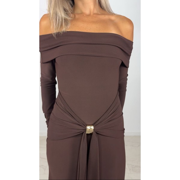 VESTIDO PUNT PIQUE MARRON