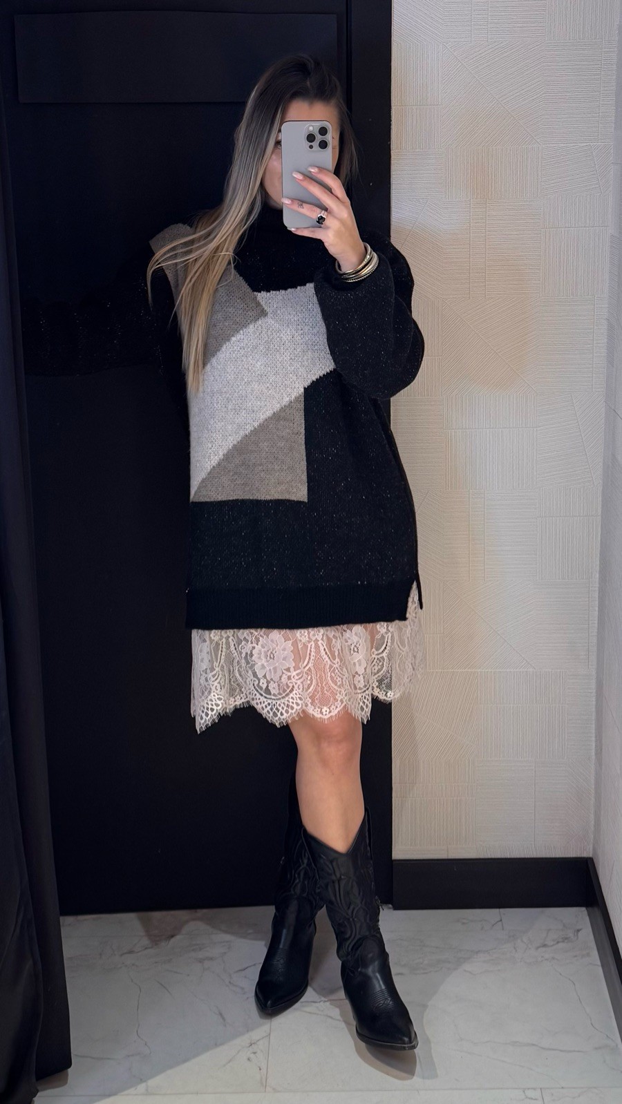 VESTIDO OVER ENCAJE NEGRO